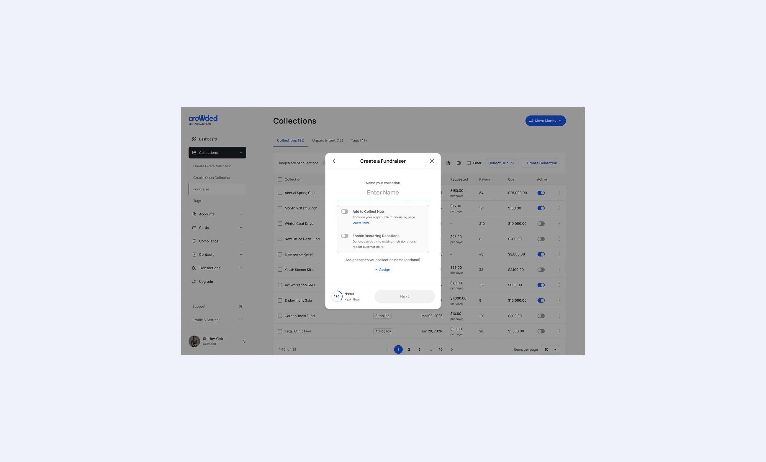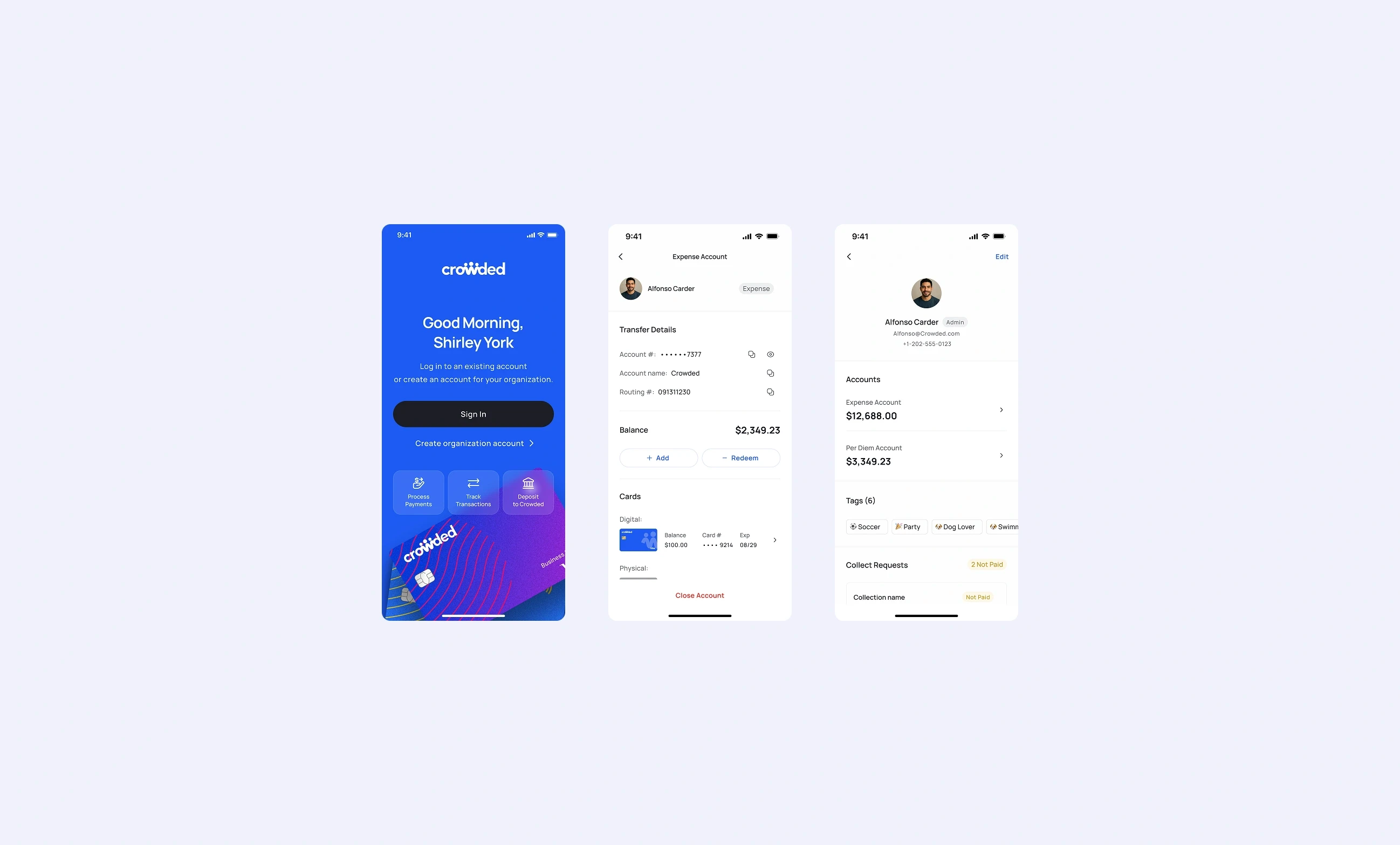 Crowded is the only compliance-first CFO suite designed specifically for the unique regulatory landscape of nonprofits. As the lead designer, I was responsible for transforming a fragmented back-office experience—spanning collections, budget allocation, and IRS e-filing—into a unified, automated ecosystem. My focus was on "verticalized efficiency," ensuring that treasurers could achieve financial stability without the overhead of manual administration. I spearheaded a high-impact overhaul of the Onboarding and Collect features, the platform’s primary growth drivers. By integrating IRS Master File data, I successfully redesigned a high-friction, multi-step process into a streamlined "Aha!" moment, drastically reducing user drop-off. Simultaneously, I architected a White Label infrastructure. This plug-and-play solution utilizes a sophisticated variable-based system in Figma to support limitless brand variants—controlling color palettes, typography, and corner radii—directly enabling API sales to new institutional clients.
